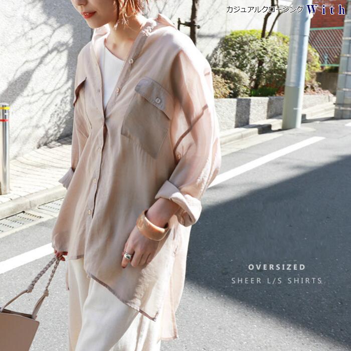 オーバーサイズ長袖シアーシャツ レディース ブラウス シースルー 羽織り アイボリー ブラック ラベンダーグレー ベージュ ダークベージュ Mサイズ カジュアルクロージング With 通販 Yahoo ショッピング